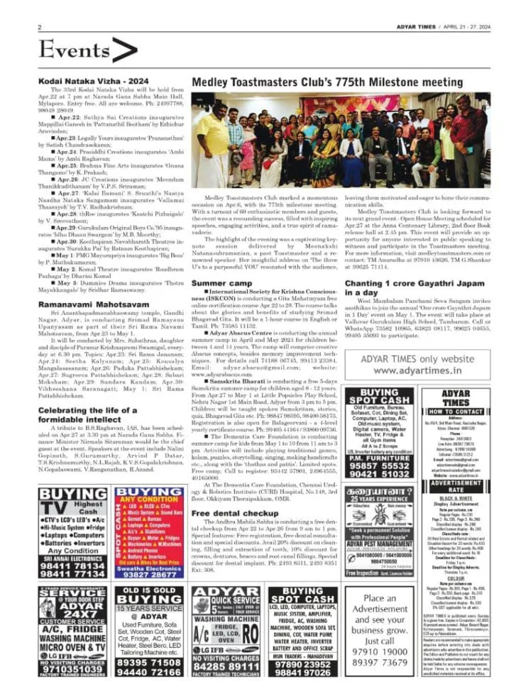 Press release by Adyar Times – Published in Page 2 – April 21, 2024