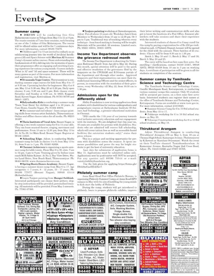 Press release by Adyar Times – Published in Page 2 – May 5, 2024
