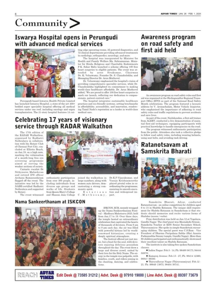 Press release by Adyar Times – Published in Page 6 – January 26, 2025
