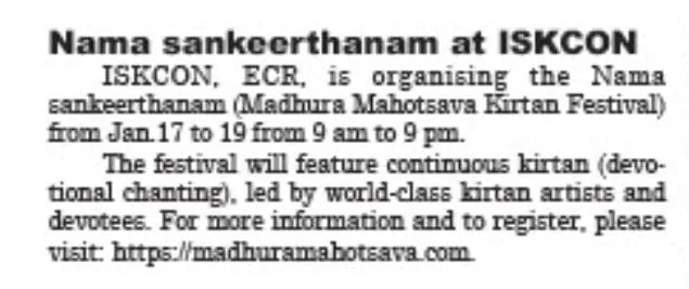 Press release by Adyar Times – Published in Page 2 – January 12, 2025