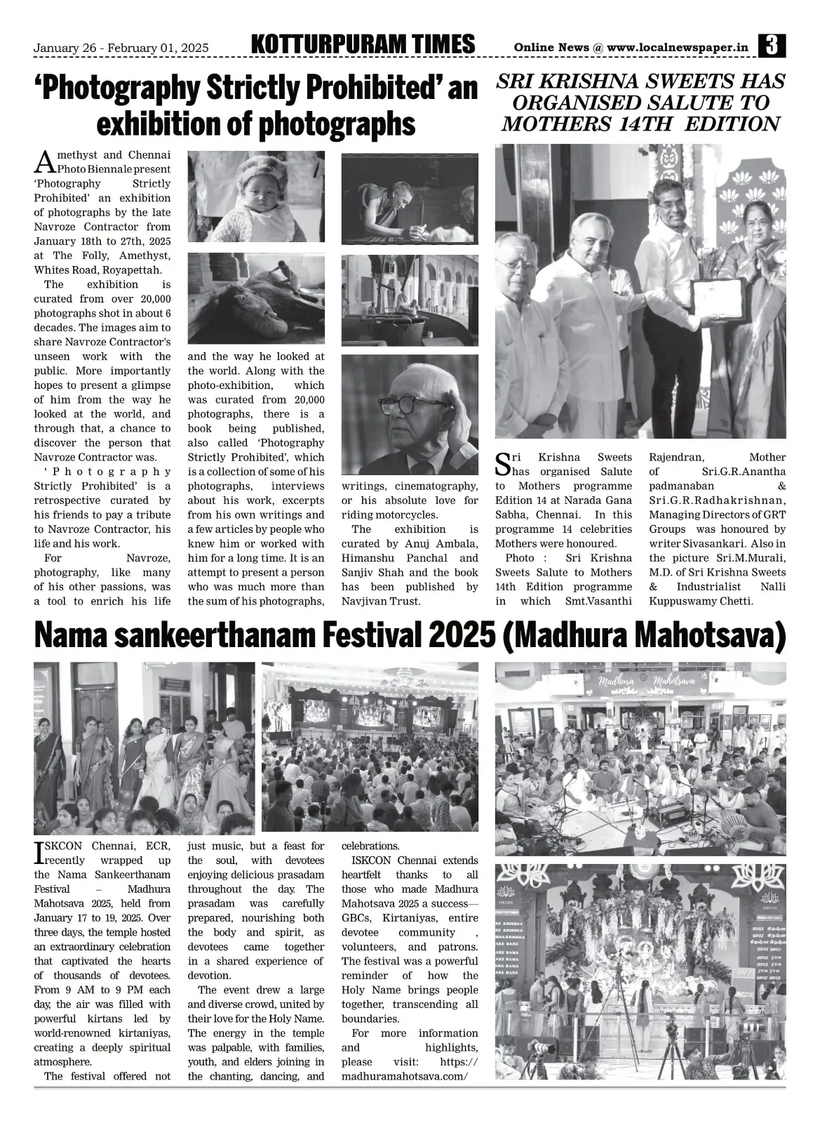 Press release by Alwarpet Times (and other Times papers) – Published in Newspaper – January 26, 2025