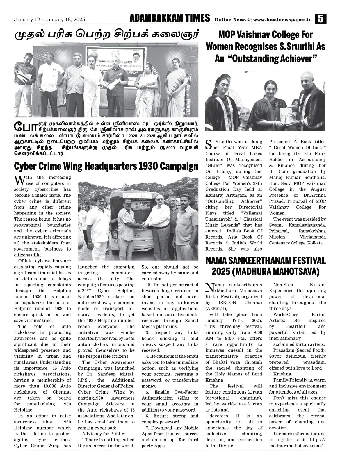 Press release by Kotturpuram Times (and other Times papers) – Published in Newspaper – January 12, 2025