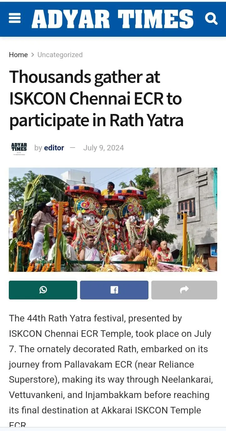 Festival Coverage: Rath Yatra (ECR) 2024 Festival News