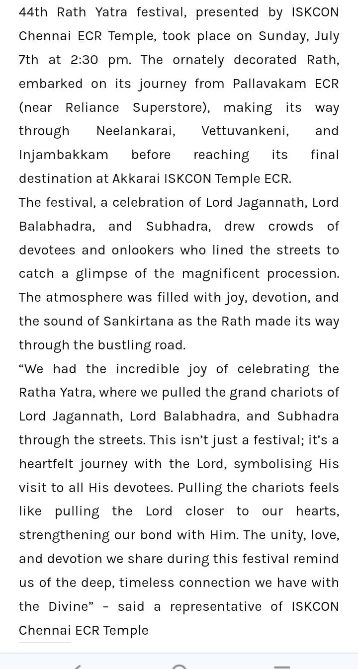 Rath Yatra (ECR) 2024 Festival News - Chennai Vision