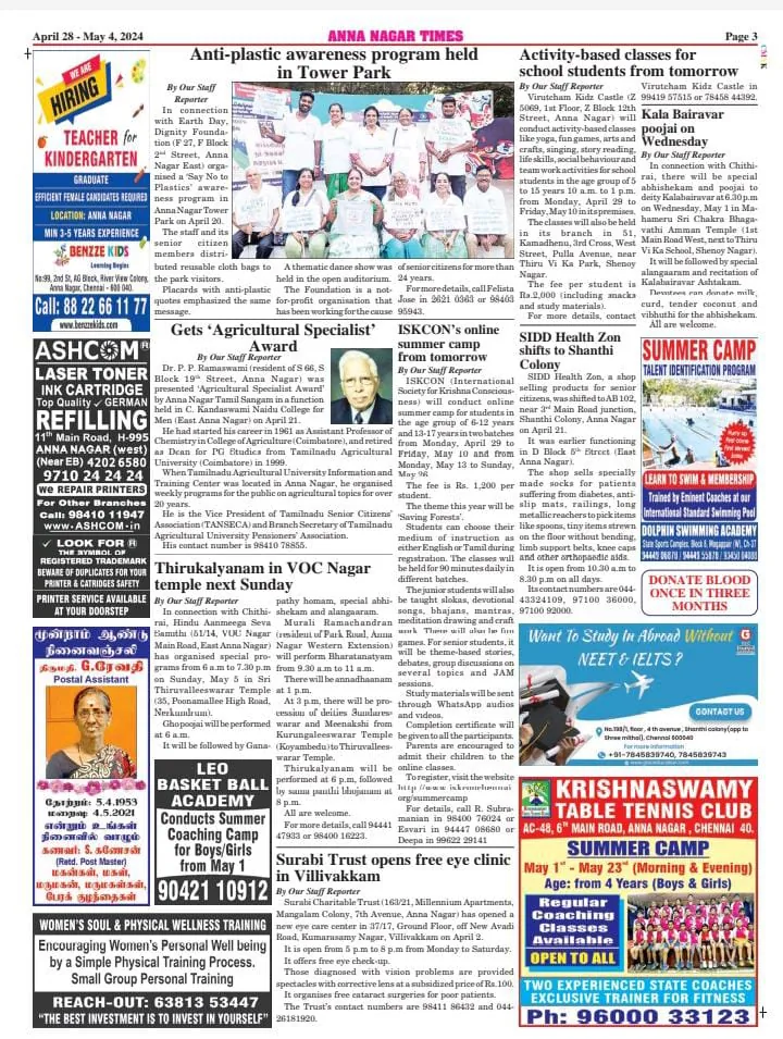 Press release by Anna Nagar Times – Published in Page 3 – April 28, 2024