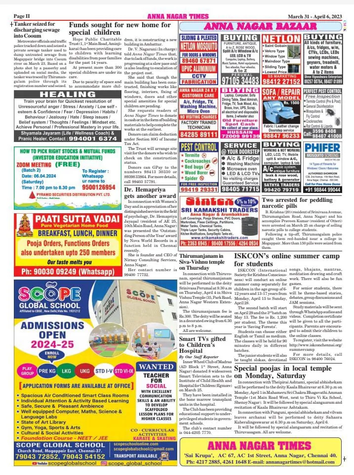 Press release by Anna Nagar Times – Published in Page II – March 31, 2024
