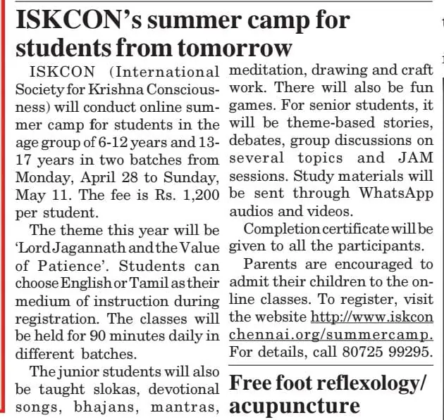 Press release by Anna Nagar Times – Published in Page II – April 27, 2025