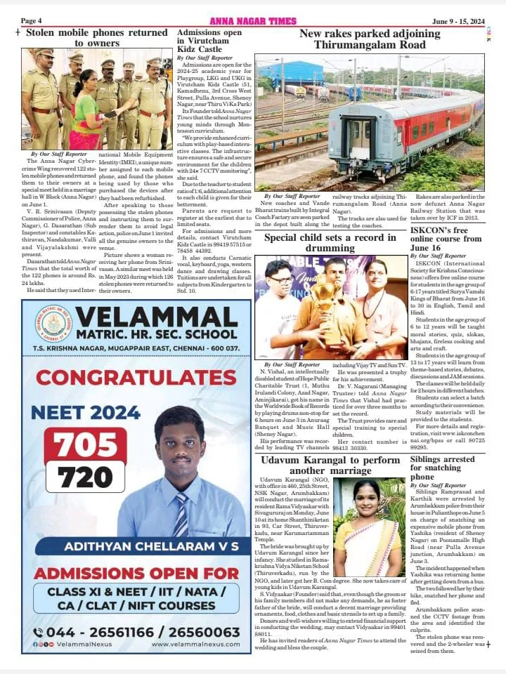 Press release by Anna Nagar Times – Published in Page 4 – June 9, 2024