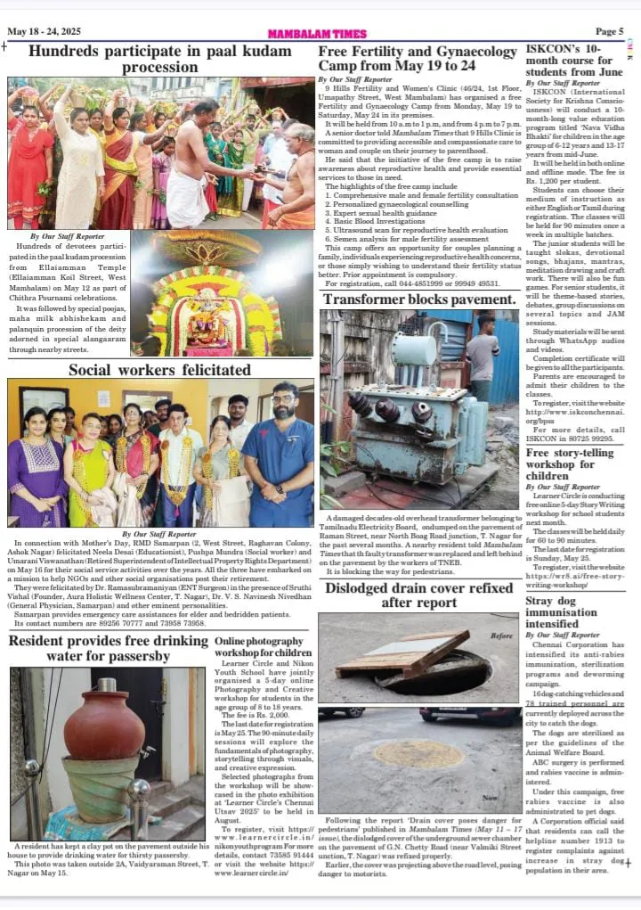 Press release by Anna Nagar Times – Published in Page 3 – May 18, 2025