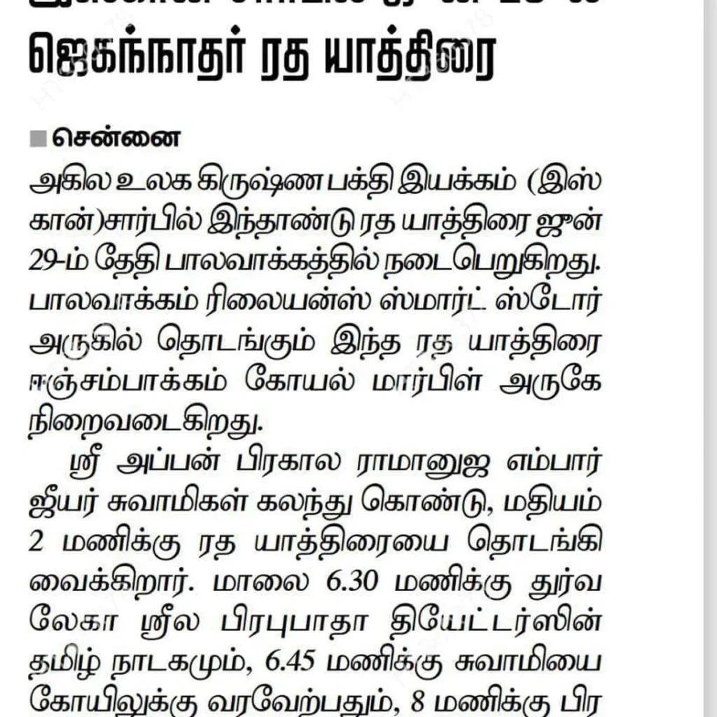 Post NewsISKCON Chennai ECR Sri Radha Krishna templeFestival Coverage: Rath…