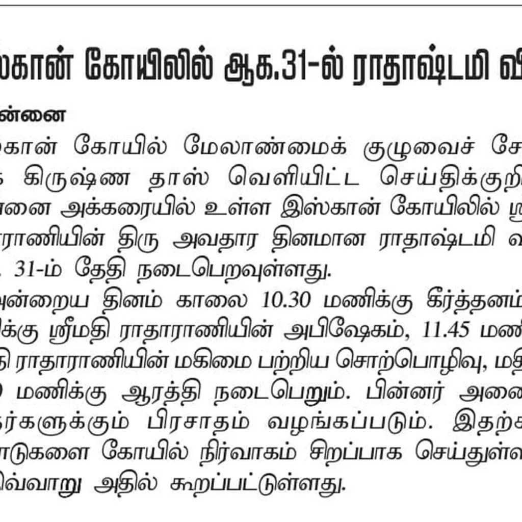 Post NewsISKCON Chennai ECR Sri Radha Krishna templeFestival Coverage: Radhastami…