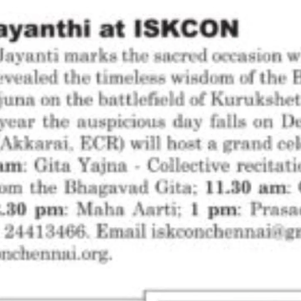 Post NewsISKCON Chennai ECR Sri Radha Krishna templeFestival Coverage: Gita…