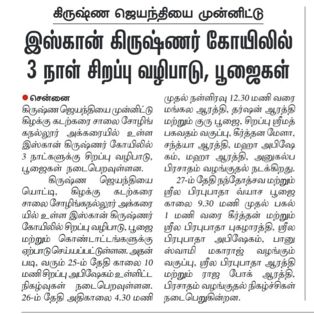 Post NewsISKCON Chennai ECR Sri Radha Krishna templeFestival Coverage: Janmashtami…