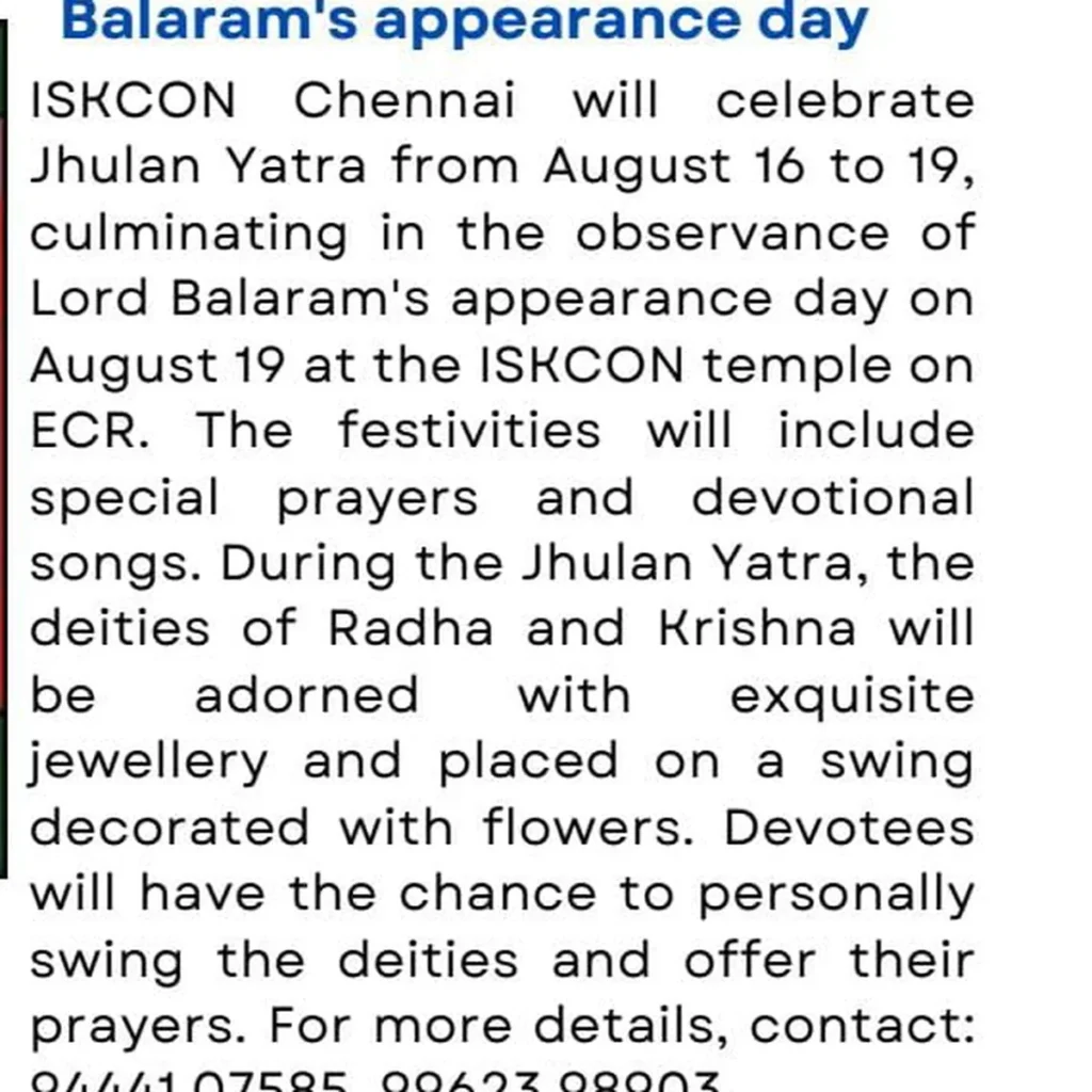 Post NewsISKCON Chennai ECR Sri Radha Krishna templeFestival Coverage: Jhulan…