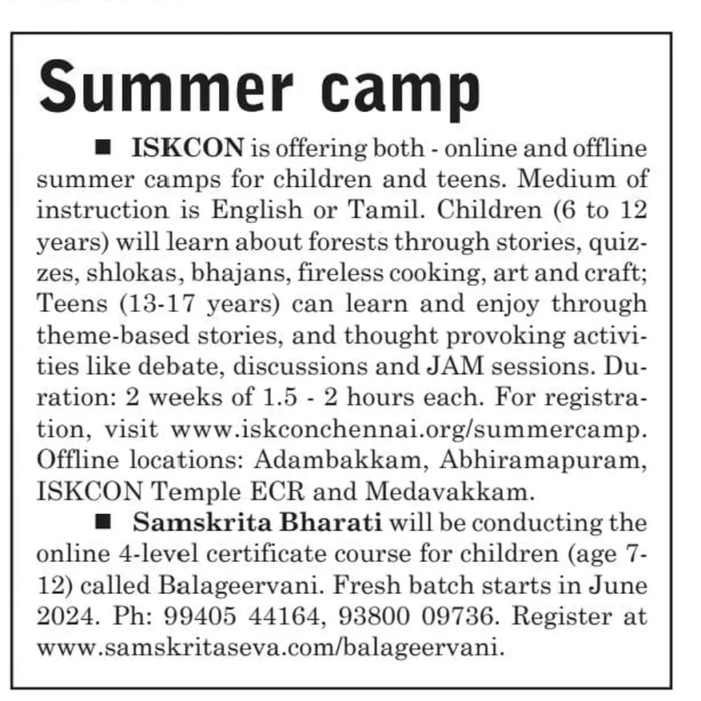 Post NewsISKCON Chennai ECR Sri Radha Krishna templeFestival Coverage: Summer…