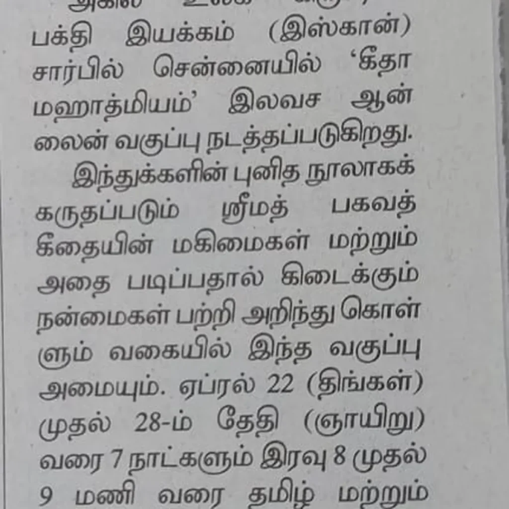 Post NewsISKCON Chennai ECR Sri Radha Krishna templeFestival Coverage: Gita…